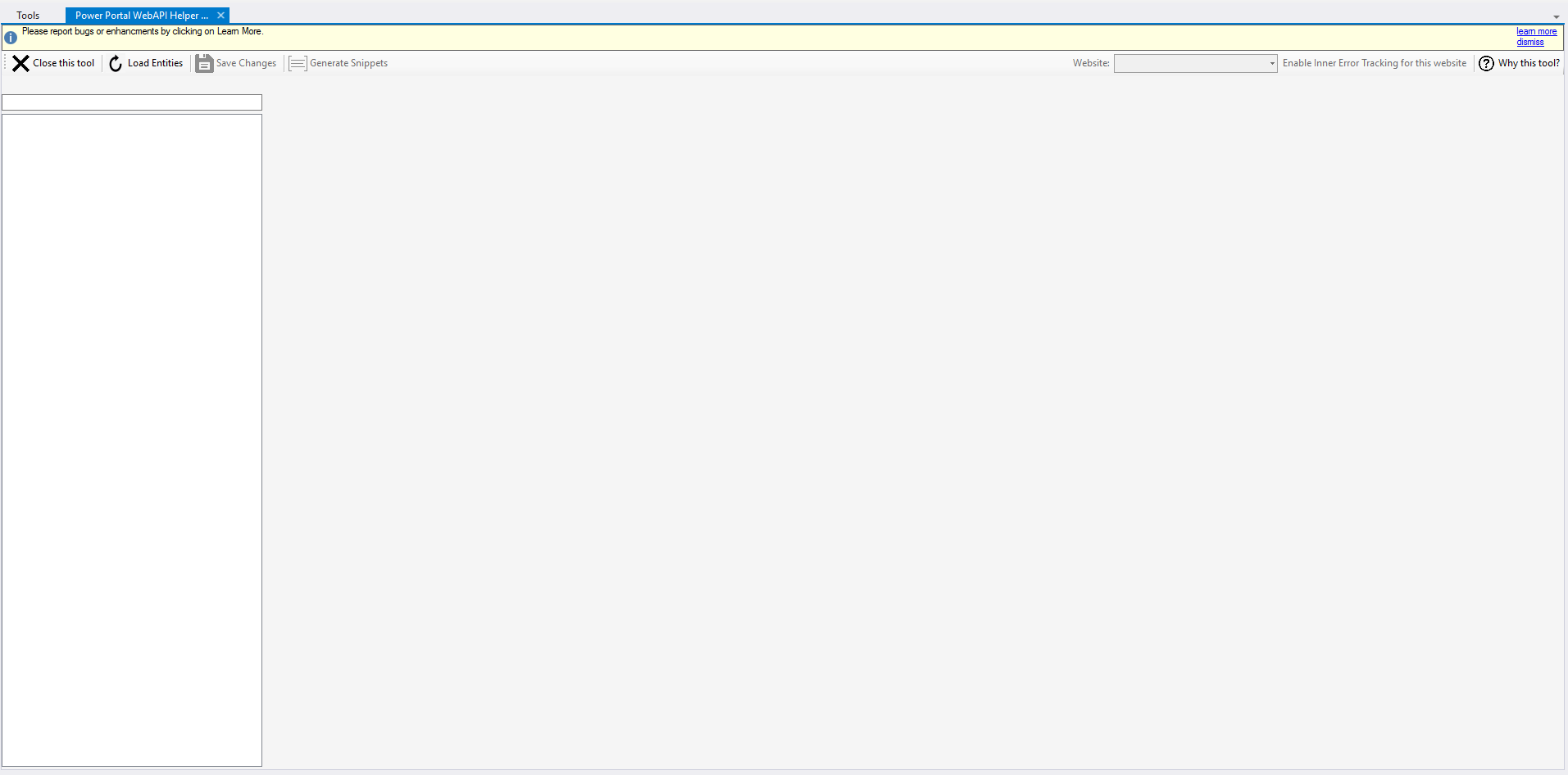 Note: Microsoft Docs clearly says that this feature should be used with data entities such as contact, account, case and custom entities. This feature shouldn’t be used on configuration entities such as adx_website or other system entities that store configuration data. Unfortunately and to my knowledge, I couldn’t find a very deterministic way for filtering every entity that shouldn’t be used with the Web API so if you know of a way, please do tell so that I can fix the filtering logic. The current logic is to exclude the list provided by Microsoft which consists mostly of the adx_ entities. I also did some judgment calls on other entities that store configuration data and not business data.